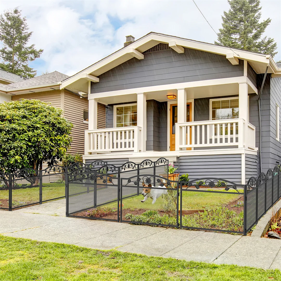 Ideal for outdoor pet containment, safety, and decoration, this metal pet playpen fence combines functionality and style, giving pet owners peace of mind while enhancing their garden or patio.