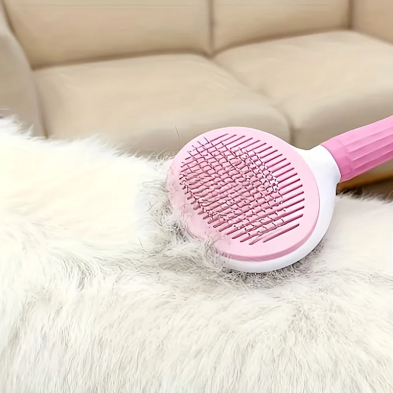 Make grooming simple and mess-free with this Cat & Dog Pet Hair Removal Comb, designed with a convenient one-click hair removal button. With a single press, collected fur releases instantly from the brush, saving time and effort during cleanup.